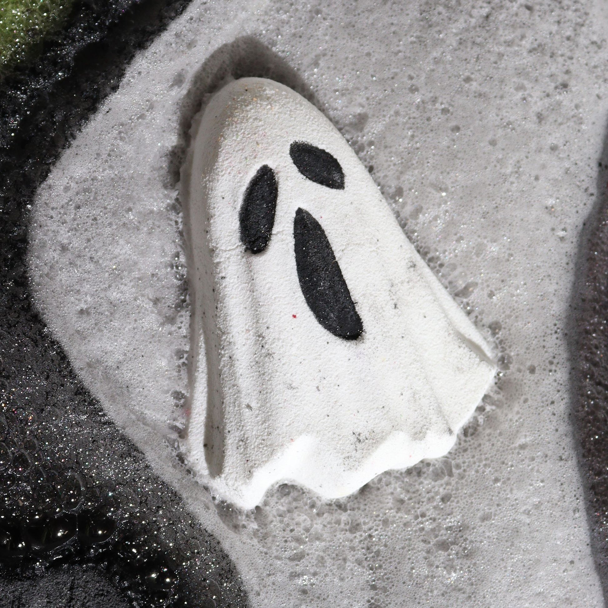 Once dropped into the tub, this ghostly figure fizzes away, releasing a mysterious, lingering fragrance that transforms bath time into a ghostly encounter.